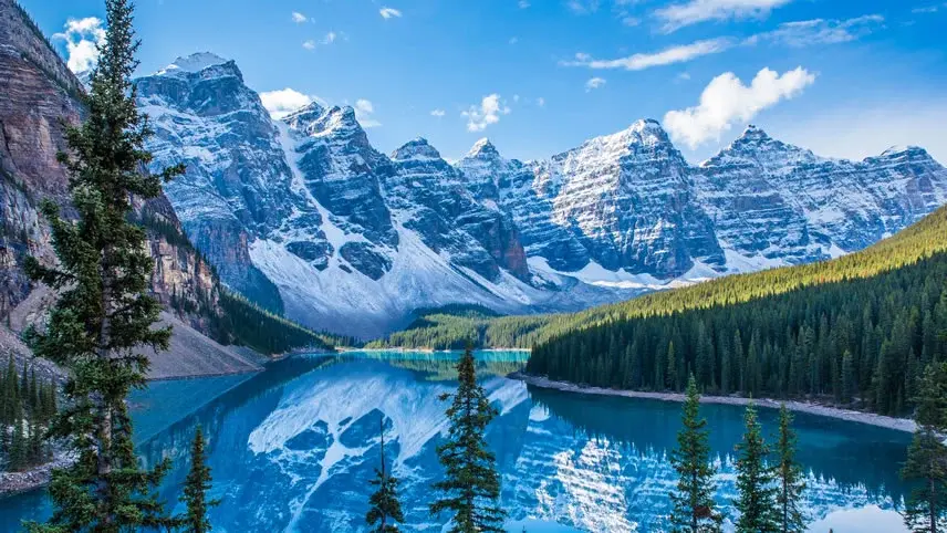 Start with a morning visit to Lake Louise and Moraine Lake. Afternoon free in Banff to visit local shops, ride the Banff Gondola, or relax in hot springs. Evening farewell dinner. Overnight in Banff.